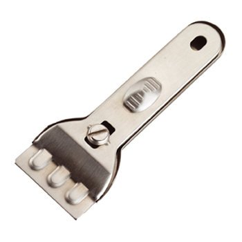 A professional hob scraper for use on ceramic hobs. Includes two spare double sided blades stored within the handle. Easy and comfortable to use for effective cleaning.